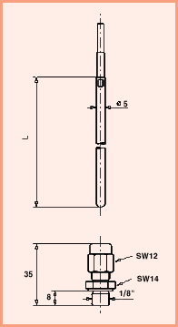 Pt100, Tmax = 350¡ÆC, ¨ª 5mm, 1m Teflon cable, resistant up to +240¡ÆC |