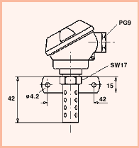 | T/P/N 460 Built-In Sensor with Connecting Head Type Operative Range: for measurements in room air |