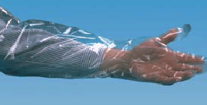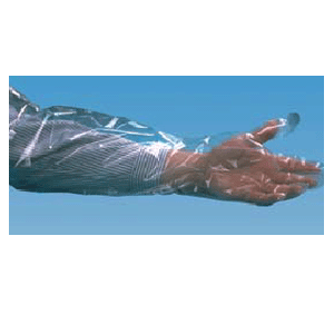 Heat-sealed clear polyethylene gloves provide com-plete arm protection.